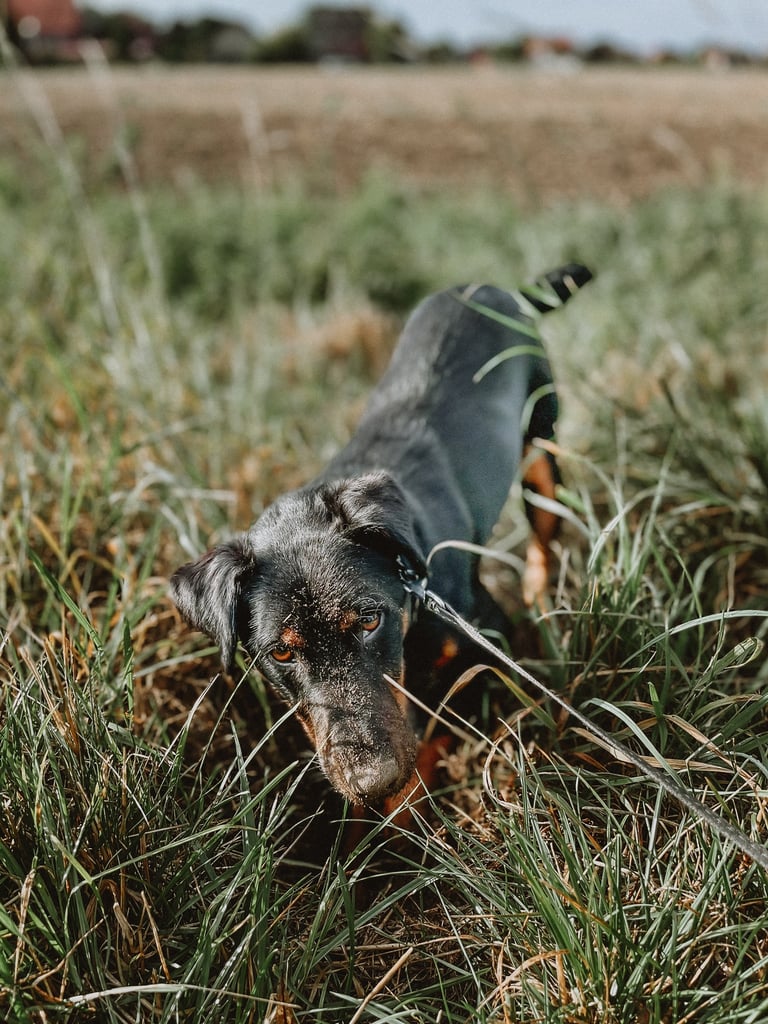 Auch in der Nachsuche werden unsere Hunde gezielt vorbereitet. Sie arbeiten konzentriert auf der Fährte und bleiben auch bei schwierigen Verläufen ruhig und sicher.